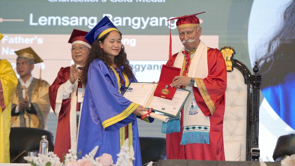 The convocation brimmed with accolades, including five prestigious gold medals for top performers. Leading the pack, Lemsang Bangyang from the Department of Education clinched the Chancellor’s Gold Medal for her stellar CGPA of 9.30, a feat that exemplifies unwavering commitment.